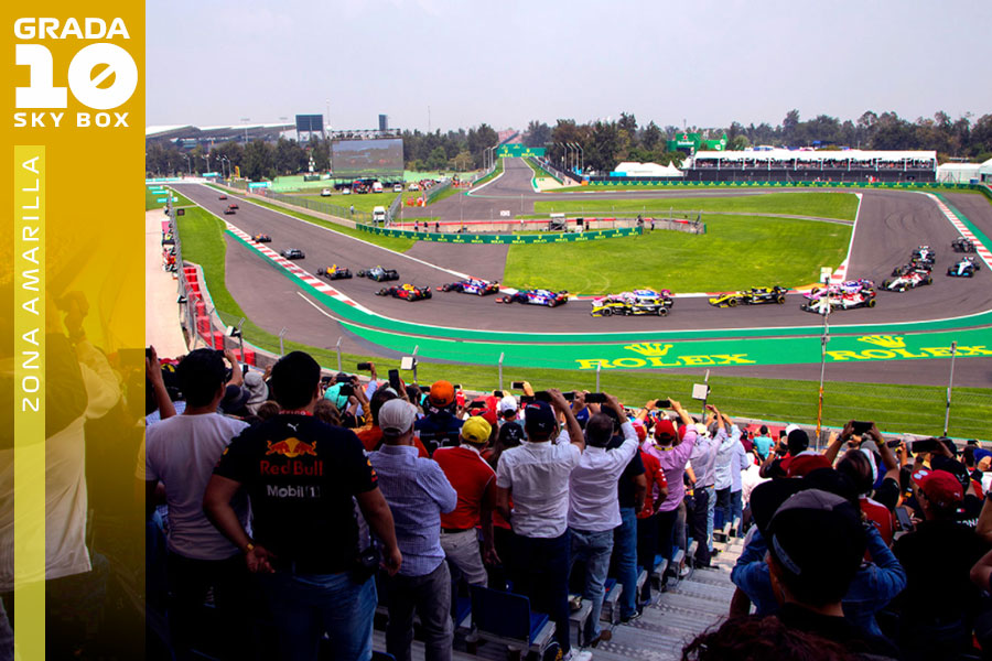 Los lugares Sky Boxes Grada 10 están ubicados en una de las zonas más emocionantes de la pista, palcos techados en la zona más alta de las gradas, el mejor lugar para disfrutar la emoción de los rebases en curvas, además contarán con el servicio de alimentos y bebidas dentro del Speed Lounge de zona amarilla.